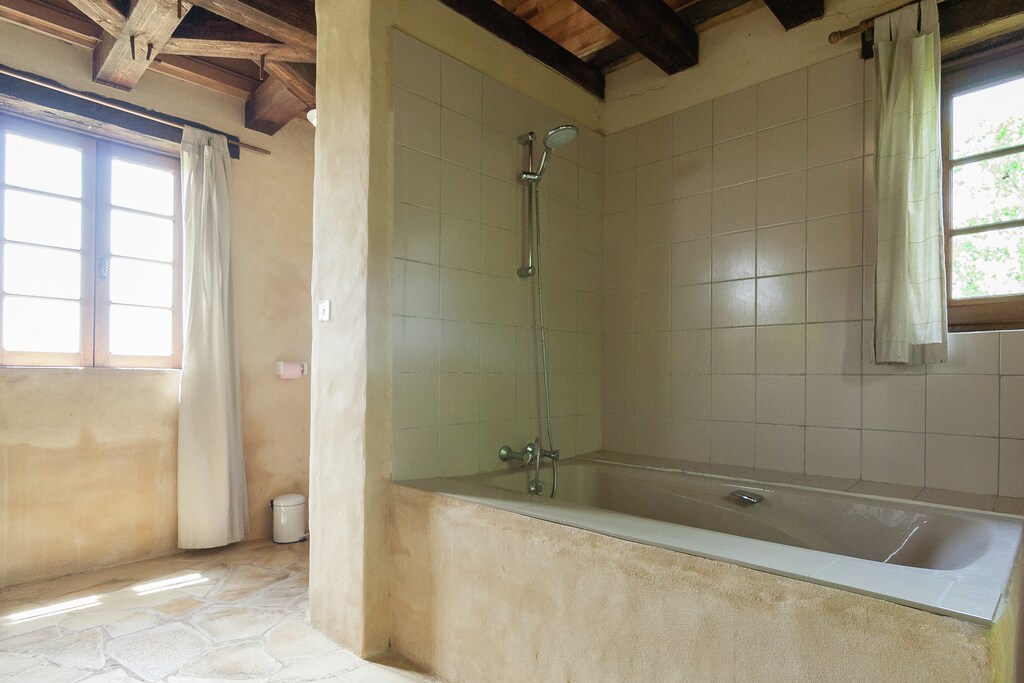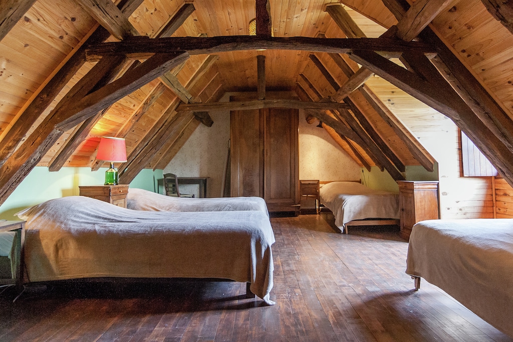 The houses are tastefully decorated with respect for their original charm. Scattered across the wooded estate are cozy shared spots, including a wood-fired pizza oven at the center, near the home of the welcoming managers. The newly upgraded pool (2023) is a summer favorite, while the jeu de boules court offers a truly French touch. In La Fermette’s spacious living room, guests can enjoy music around the grand piano or gather by the fireplace. The terrace, with panoramic views, is ideal for sunset dinners and drinks.