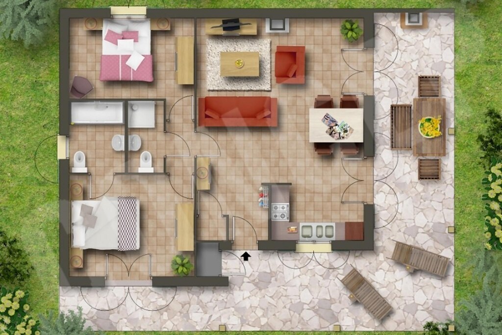 Wij waren met drie kinderen, 8 jaar, 3 jaar en 10 maanden. Het huisje voldeed aan onze wensen. Voldoende ruimte luxe, en veel buiten ruimte. Alleen jammer dat we geen parasol hadden want na 16.00 hadden wij geen schaduw meer op ons terras. Ook had ons huisje geen omheining waardoor we wel wat privacy miste. Maar gelukkig liepen er niet veel mensen langs ons huisje waardoor we toch rustig zaten. Het zwembad was prima en vooral het verwarmde grote bad was fijn. Onze oudste vermaakte zich prima met de andere Nederlandse kinderen en als onze jongste sliepen kon hij zelf gaan zwemmen. Van de omgeving niet zoveel gezien. Op de wat bewolkte dagen wel gezocht naar leuke dorpjes maar wij hebben ze niet echt gevonden. Bij de receptie hadden ze ook niet echt tips. Winkels op prima afstand te berijden. Wij hebben een heerlijke vakantie gehad. 2 weken was wel lang zat.