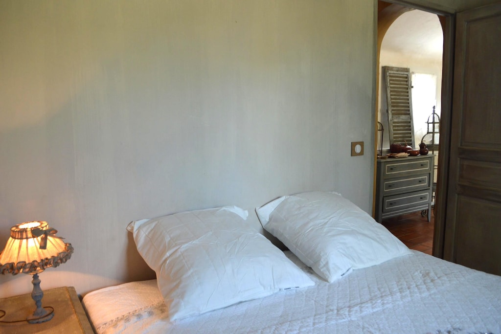 You enter the La Bastidane estate via an electric entrance gate. A long driveway takes you to the house. It is a natural stone single-storey house with wooden shutters and thick walls, completely in accordance with the rules of charm of Provence.