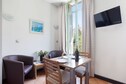 Welcome to Le Palais Rossini, a stately residence housed in a former grand hotel that blends classic architecture with modern comforts. Each studio and apartment is thoughtfully furnished with air conditioning, a flat-screen TV, and a private bathroom. Enjoy your morning croissant in your own kitchenette, equipped with a dishwasher, microwave, and fridge — perfect for a relaxed start to your day.