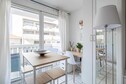 Fully equipped apartment with air conditioning, quiet balcony and a spacious living space.