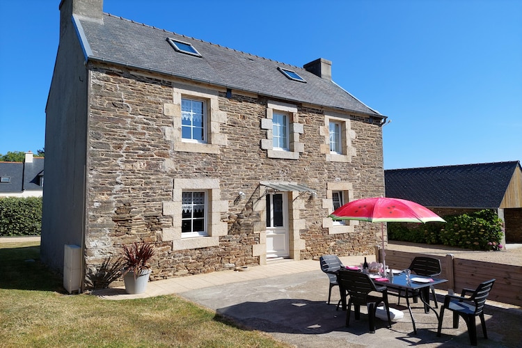 This pretty Breton stone house is in a very quiet location on a 500 m² garden. The beamed ceilings, the natural stone walls preserved during the renovation and the pretty corner fireplace create a particularly cozy atmosphere. Only 300 m below the holiday home, the tidal river Penze meanders through the idyllic valley, a few kilometers further it flows into the bay of Morlaix.