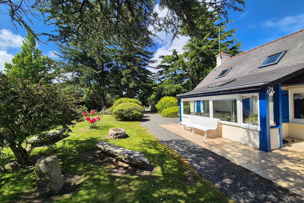 Cozy holiday home surrounded by palm trees and hydrangeas on a large, well-kept garden property. Two terraces invite you to uncomplicated outdoor meals. You can relax in the shade of the tall trees on the comfortable lounge garden furniture. Especially on cooler days, the wood-paneled conservatory is a pleasant lounge. The property is situated between the small village of Plourivo and the bustling port town of Paimpol, very close to the Goëlo coast. A first small sandy beach on the Trieux river is only 3 km away. Picturesque coastal landscapes, sandy and pebbly beaches and a particularly popular, natural seawater pool can be reached in a few minutes by car.