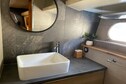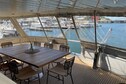 This special yacht has a beautiful, bright living room with flat screen TV, a dining area, a well-equipped kitchen, 2 suites with double beds and 2 cabins with 2 single beds. Each cabin has its own bathroom and the large terrace on the upper deck is ideal for a relaxing evening with your loved ones. For safety reasons, the capacity of the yacht is limited to a maximum of 8 people. A deposit of 5000 euros will be requested upon arrival.