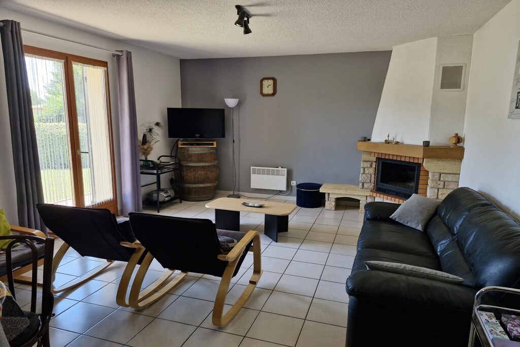 Inside, the villa offers a warm and inviting living space with a fireplace, dining table, and TV. The well-equipped kitchen allows you to prepare delicious meals with ease, while the washing machine ensures convenience during longer stays. Whether you're enjoying a quiet evening indoors or hosting a lively dinner on the terrace, the home is designed for comfort and connection.
