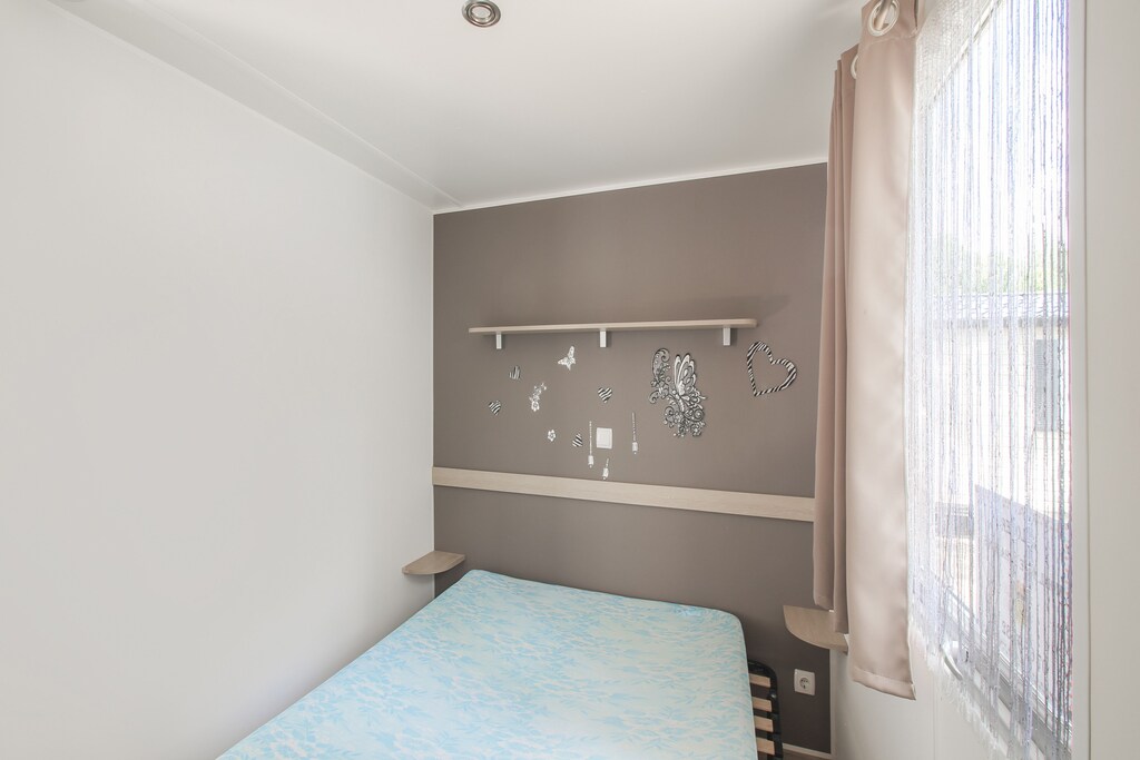 This delightful mobile home in Saint-Jean-de-Monts offers a cozy retreat for families or small groups. Relax on your private outdoor terrace and enjoy breakfast in the fresh air. Enhance your stay by purchasing a Fun-pass from the owner, granting access to shared pools, a sauna, and a bubble bath within the resort. For entertainment, take advantage of on-site games like table tennis, foosball, air hockey, billiards, and tennis. Fitness fans will appreciate the gym facilities available on-site.