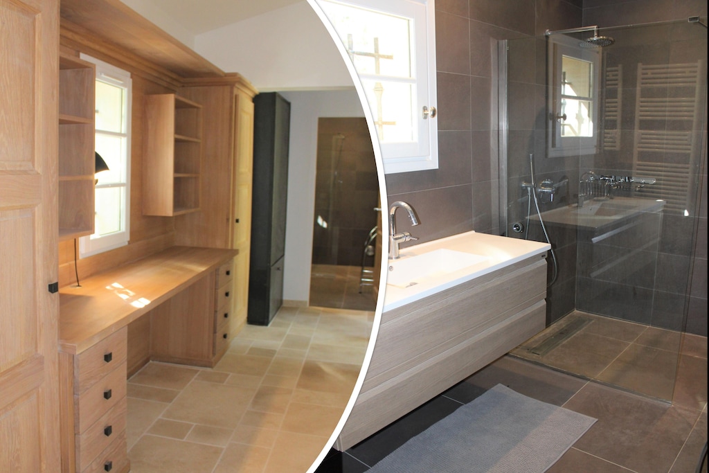 It is located along a rural road with no through traffic, within walking distance of the center of Tourtour with a bakery, local shops, and nice restaurants. You can go kayaking and hiking in the nature reserve of the Verdon and Le Lac de Sainte-Croix region. Famous villages such as Lorgues, Cotignac and Salernes are close by and a day at the sea at Sainte-Maxime (1 hour drive) is also possible.