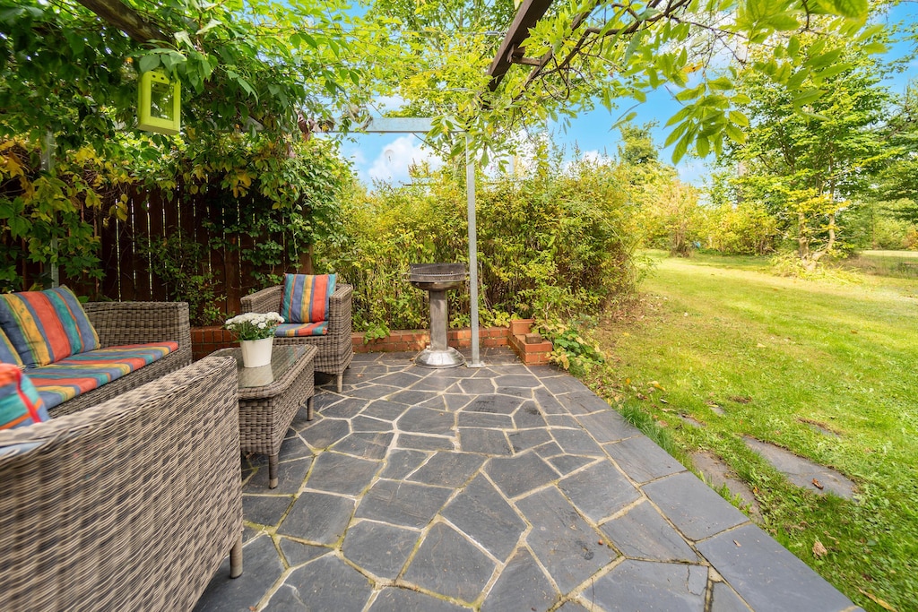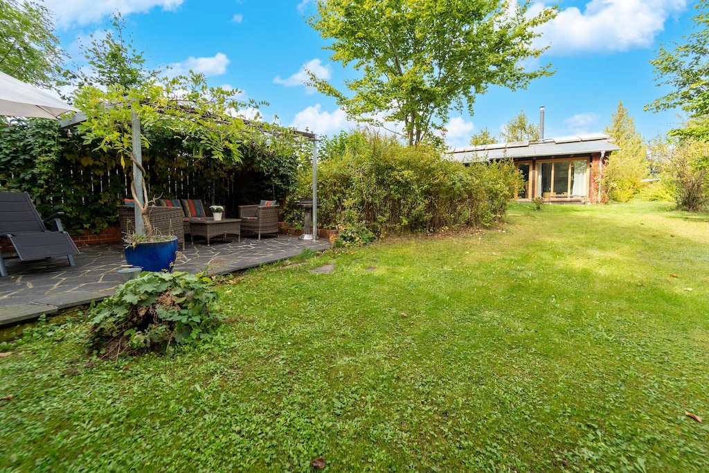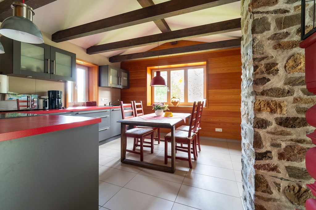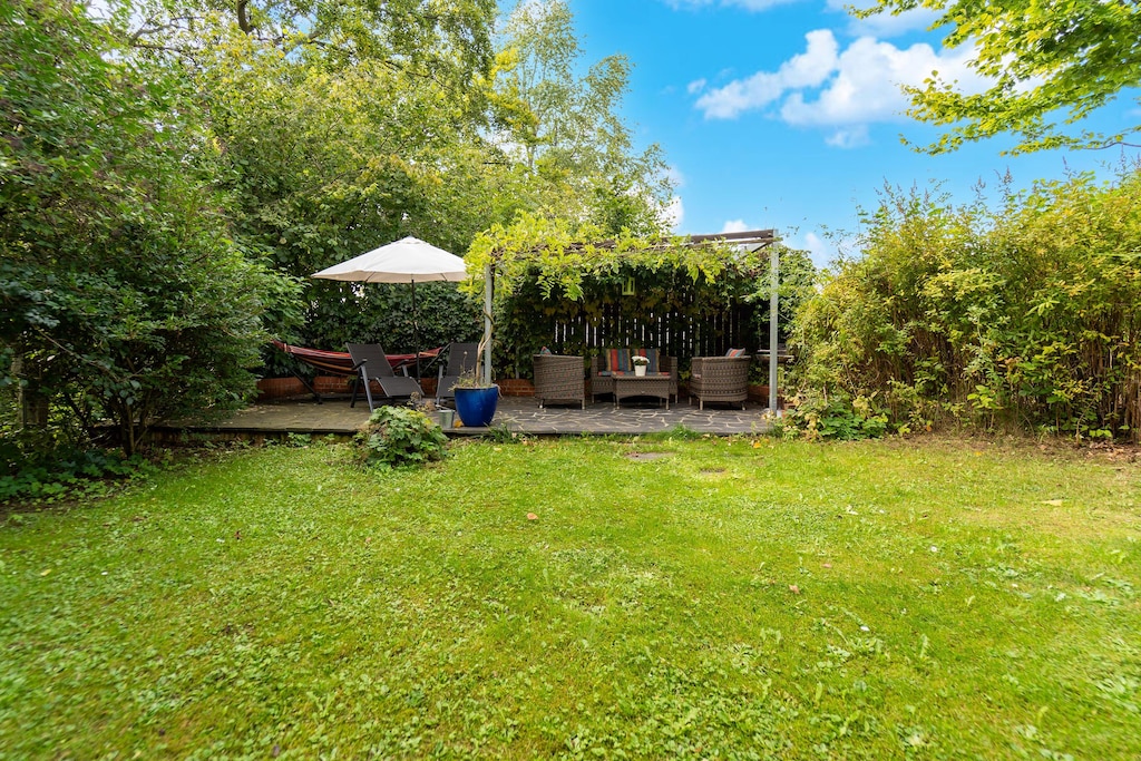 This inviting ground-floor home in Allrode combines warm interiors with lush outdoor space—perfect for couples, small families, and pet lovers looking to explore the Harz region. The living room includes a single sofa bed, satellite TV, and fireplace, all set over underfloor heating for a snug retreat. The kitchen features everything needed for easy meal prep: kettle, coffee machine, oven, microwave, toaster, dishwasher, and a fridge-freezer.
