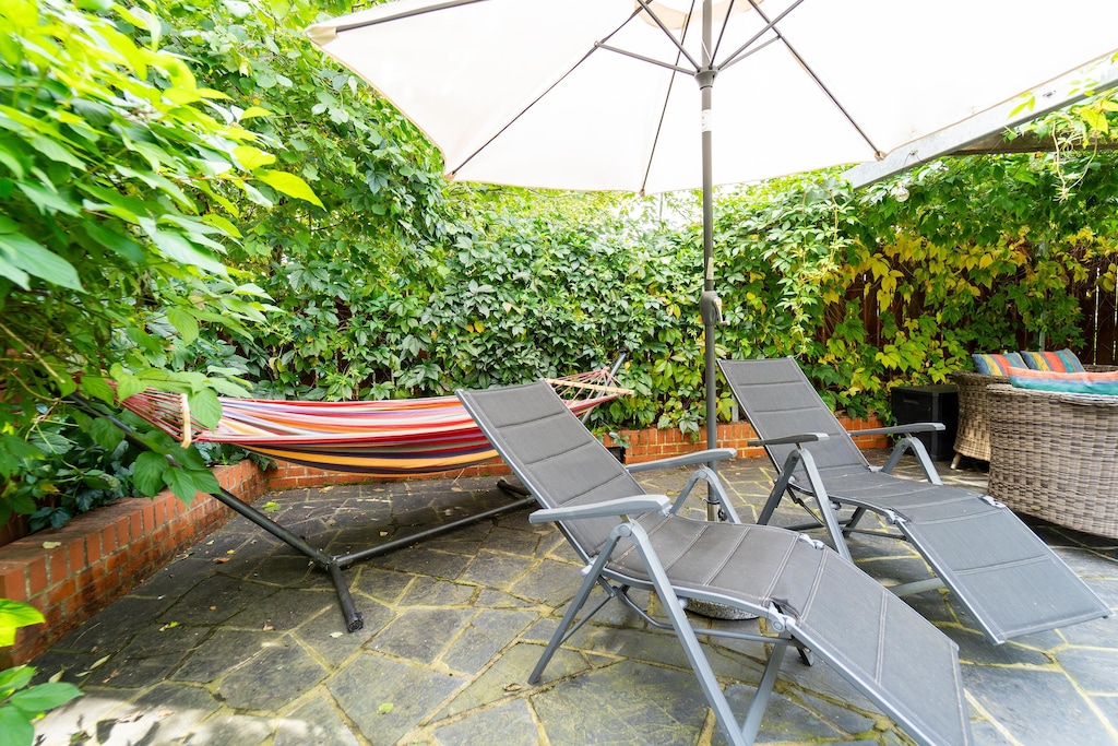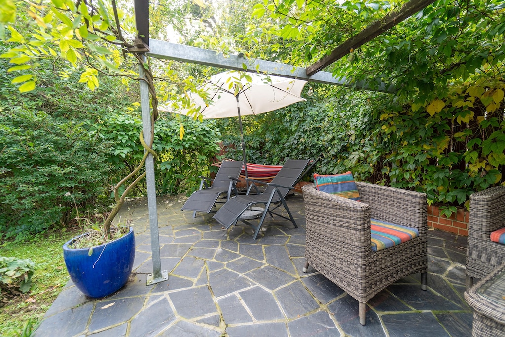 Two bedrooms offer restful sleep, with one double and a second that flexes between a double or twin setup. The bathroom includes a shower, washbasin, and toilet, and there's a washing machine in the storage area for extended stays. Outside, enjoy the private garden with furniture, BBQ, and sunscreen for relaxed afternoons. Private parking makes access easy, and the location puts Restaurant Selketal just 3.7 km away with trails, skiing, and castles close by.
