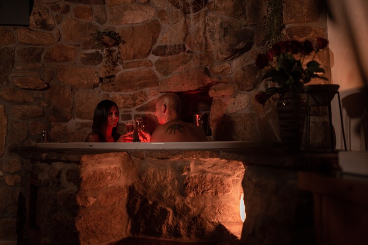 WAUW wat een huis. In het echt was het nog mooier en sfeervoller dan op de foto's. Ongelofelijk luxe en romantisch. Werkelijk aan alles is gedacht. Er is intieme verlichting, sfeervolle muziek, vloerverwarming, er staan kaarsen voor je klaar, biobrandstof voor de open haard, er zijn handdoeken in overvloed... Je hebt je eigen warmtecabine en de jacuzzi is hemels, en daarnaast is er zelfs ook nog een prachtig 'douchedoolhof' met glazen wanden en muursproeiers. Ook zeer prettig het is een vrijstaand huis en je hebt het helemaal voor jezelf. Als je wilt kan de gastvrouw 's ochtends broodjes voor je neerleggen via een luik in de keuken, waar zij van buiten bij kan en jij van binnen. Ze is warm en hartelijk, maar ze laat je verder fijn met rust (al mag je haar wel sms'en of bellen als er iets is dan kan ze binnen tien minuten ter plaatse zijn). Kortom de ideale plek voor een romantisch weekend voor twee. En vooral boeken met slecht weer, want als je dit huisje eenmaal gezien hebt, WIL je helemaal niet meer naar buiten!