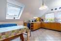 Fijn appartement, zeer compleet uitgerust. Zelfs een wasmachine, erg fijn. Prima ruimte, al oogt het op de foto’s groter. Op de foto’s is een tuin met speeltoestellen te zien, dit is een openbaar speeltuintje wat niet bij het appartement hoort. De enige buitenruimte is het balkon, waar je als het regent net niet helemaal droog zit, zeker niet met drie personen. Omgeving is leuk als je van wandelen of fietsen houdt, andere activiteiten zijn verder weg.
