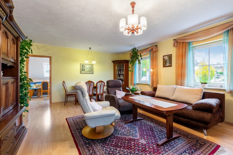 Mooi huis op de eerste verdieping van een (nieuw) vakwerkhuis in een woonwijk. Woonkamer en keuken zijn zeer ruim en van alle gemakken voorzien. Badkamer heeft aparte douche en bad en een wasmachine. Ouderslaapkamer is groot, kinderslaapkamer is klein, maar er is meer dan genoeg kastruimte in de grote slaapkamer. Er is een behoorlijk groot dakterras op het noorden, wat tijdens de hittegolf bijzonder aangenaam was. De eigenaar woont onder het huis en was heel vriendelijk bij de ontvangst. Supermarkt en andere winkels, Brauhaus en een Italiaans restaurant is allemaal op loopafstand. Er is een VVV die veel informatie en wandelroutes van de omgeving heeft. Het park in de centrum van het dorp (met mini-golf) is vooral voor jongere kinderen heel erg leuk. In de omgeving is veel te doen. Bij erg warm weer is de Esmecke Stausee een aanrader. Staat niet in folders, maar heeft een mooie ligweide en zwemgedeelte, en een klein cafeetje met toilet.