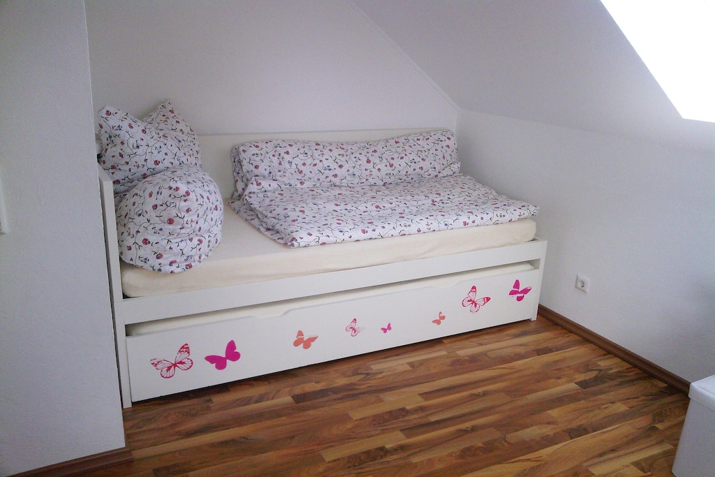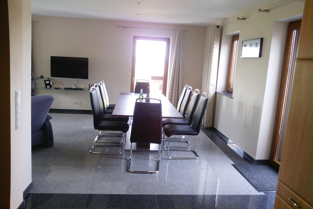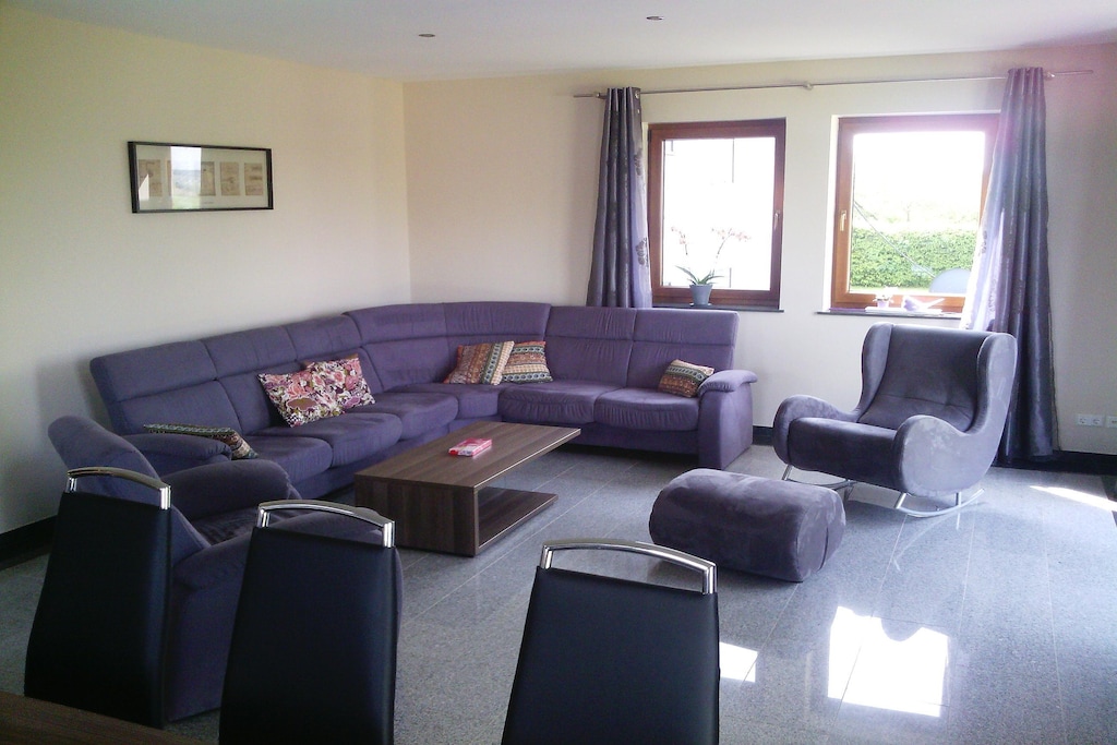 Mit 6 Erwachsenen und 4 Kindern haben wir uns von der ersten bis zur letzten Sekunde wohl gefühlt. Die Räume sind großzügig, praktisch und geschmackvoll eingerichtet. Die Terrasse ist mit bequemen Stühlen, einem riesigen Gasgrill und Sonnenschirm ausgestattet und hat einen wunderschönen Weitblick. Die riesige Wiese hinterm Haus haben die Kinder ausgiebig genutzt und die auf dem Hof lebenden Ziegen geliebt. Das Vermieter-Ehepaar ist sehr hilfsbereit, ideenreich und erfrischend freundlich. Und das spiegelt sich in der Wohnung und beim gesamten Aufenthalt wieder. Wir kommen wieder.
