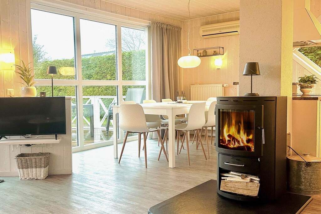 This well-appointed 2-storey holiday home in Scandinavian style is located in the 2nd row approx. 50 m from the beach in Wackerballig. On the beautiful and practical covered terrace on the 1st floor, the so-called loggia, you can extend the summer evenings. From the living room there is access to the terrace of 30 m & # 178 ;, where you can spend many wonderful hours. The house is built so that there is also a view from the houses in the second row to the water and the beach, which is located on the other side of the beach road. Not for rent to youth groups. The house is modernly decorated and the bright, wood-paneled walls and sloping ceilings give the house a bright atmosphere. The open kitchen and living room with the large windows are beautifully connected by a beautiful granite cooking island with ceramic hobs and oven. In the living room, on cool evenings you can sit in front of the TV with satellite dish with Astra reception and DVD player with a good book and enjoy the warmth of the cozy wood stove. Air conditioning is installed in the living room, kitchen and dining area. In addition, there is a pantry of 5 m & # 178 ;. After a long day in the beautiful nature, you can also relax and relax the sore muscles with a water massage in the whirlpool or a trip in the hot sauna. Gas is settled in m & # 179 ;. Nearby there are many sights and leisure activities you can experience, including you can experience the beautiful nature on long walks or bike rides. Finally, you can wait in the nearby restaurant and enjoy the view from the terrace over Geltinger Bucht. Also visit the Water Palace in Glücksburg or the museum harbor in Flensburg. A visit to the Science-Center Phänomenta is an experience for the whole family.
