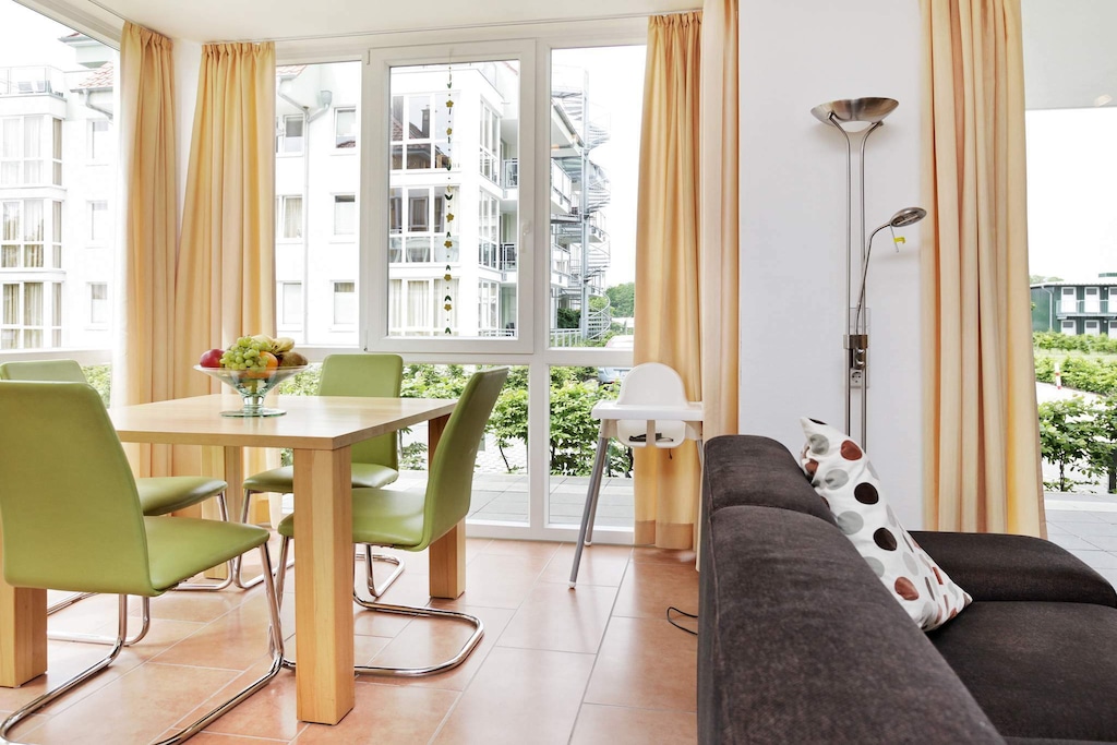 Holiday apartment in Strandpark Großenbrode close to the beach. Here you will find a well-appointed and well-equipped apartment of 57 m & # 178; with two bedrooms, one with double bed and the other with bunk bed for two people. Among other things, high chair and weekend bed for the kids as well as a washer and dryer. Here you can relax and enjoy your holiday. underfloor heating and wood stove provide cosiness and warmth. After a short walk, you can relax in the sauna or hot tub. On the terrace you can enjoy the sun and the view.