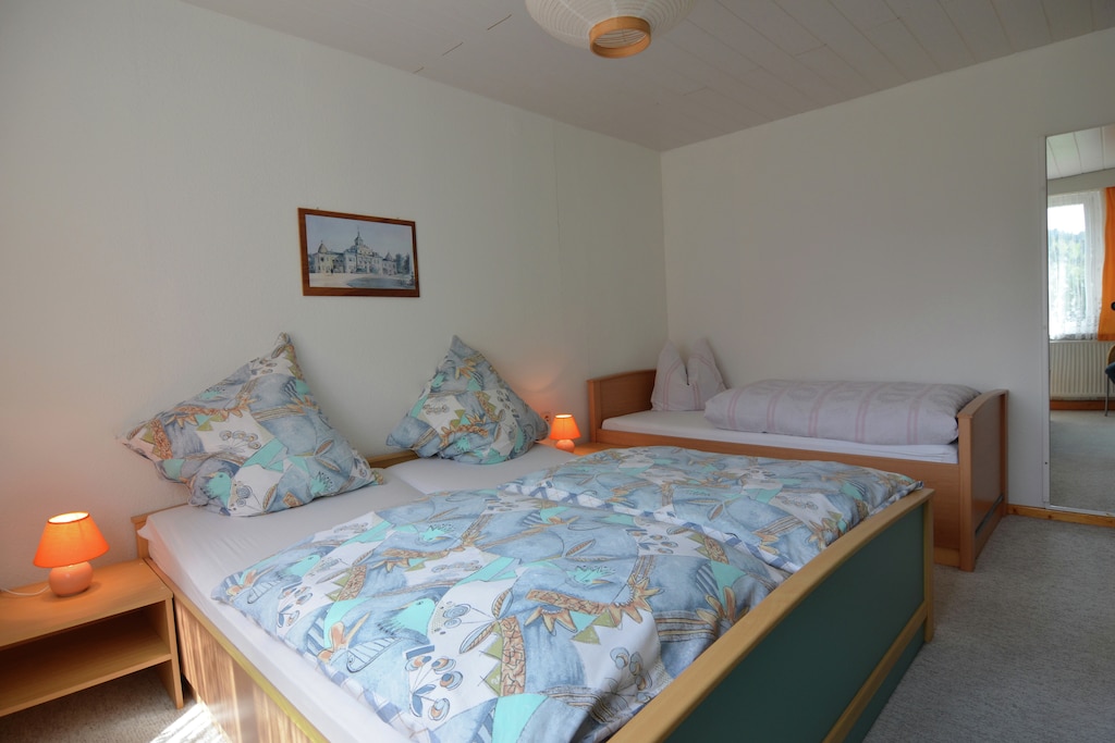 Set in the rolling landscapes of the southern Thuringian Forest, this comfortable 2-bedroom apartment offers a welcoming base for families or groups of friends. The home is designed with two bright living areas, two modern kitchens, and well-furnished bedrooms, making it easy for everyone to enjoy both privacy and shared time together. A furnished balcony opens up to views of forested hills, while the large shared garden creates a relaxing spot for outdoor meals or quiet afternoons.