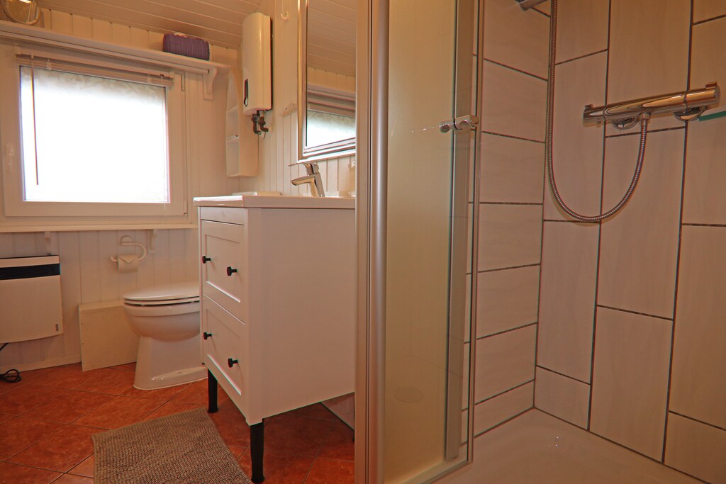Cozy wooden house in Scandinavian style, with a great terrace and a garden plot of more than 700 square meters for romping, playing and relaxing. The terrace is partially covered with a roof and there is an inviting seating area. There is a large outdoor fireplace for cozy evenings outdoors. On cooler evenings, make yourself comfortable in the living room, which also has a fireplace.