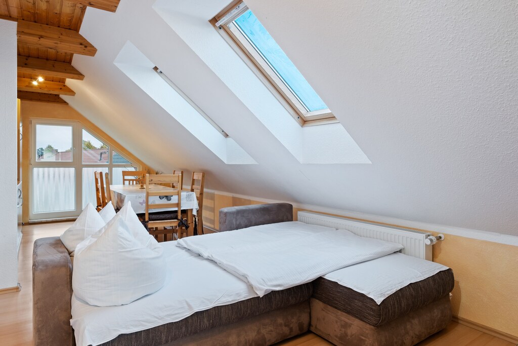 Set in the peaceful village of Groß Schwansee, just 800 meters from the beach, this pet-friendly attic apartment offers a charming retreat for families. The open kitchen is fully equipped with a 4-ring electric stove, oven, coffee machine, and dining space for six—perfect for shared meals after a day by the sea.