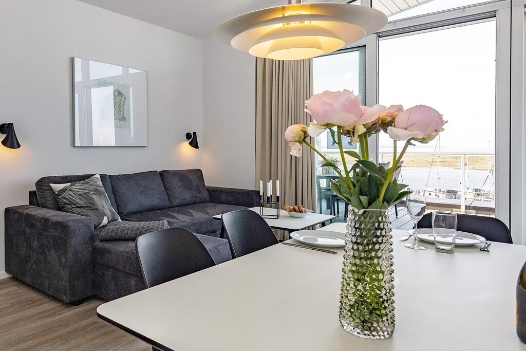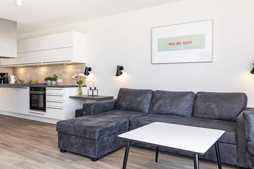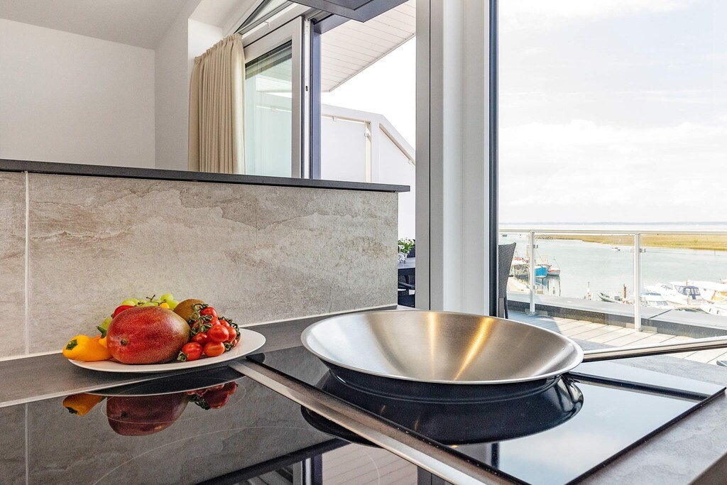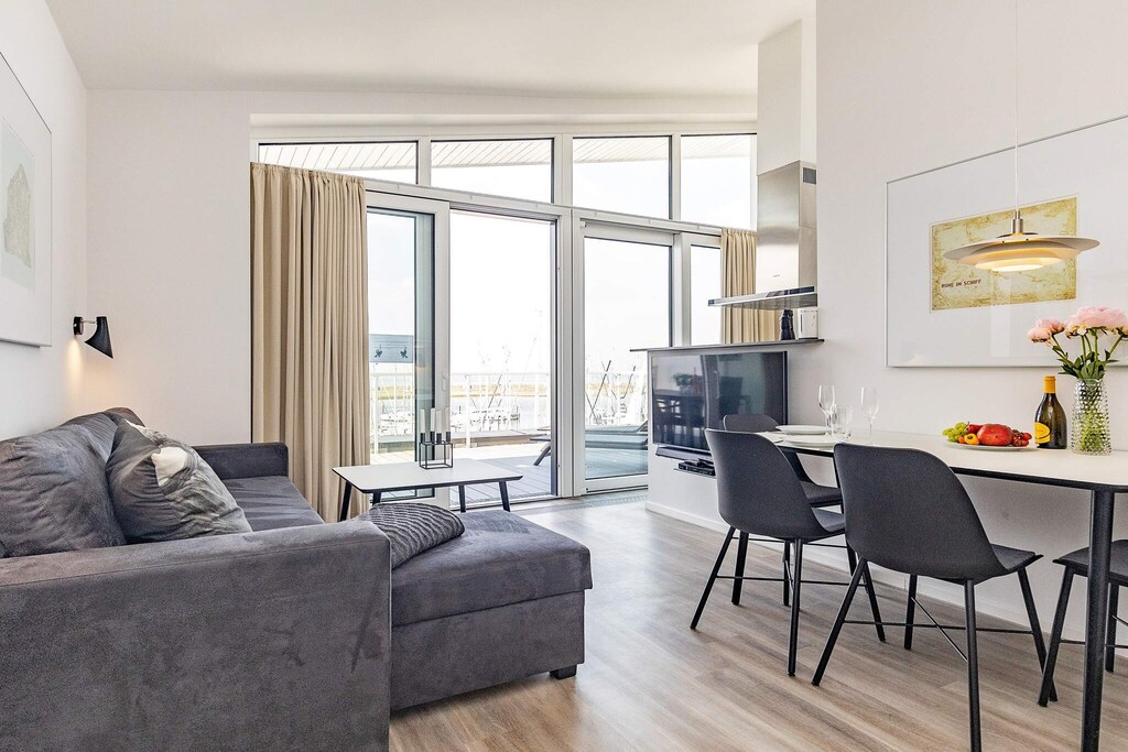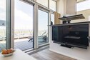 This modern penthouse apartment is located on the waterfront at Marina Wendtorf and features a spacious rooftop terrace with stunning panoramic views of the sea and the charming marina. Both the living room and terrace offer breathtaking vistas, perfect for relaxing and enjoying the scenery. The comfortable open-plan living and kitchen area provides access to the large rooftop terrace. The kitchen includes a stove and a wok burner for versatile cooking. The bedroom is furnished with a double bed and flat-screen TV, while two additional sleeping places are available on a sofa bed in the living room. The bathroom is equipped with a rain shower featuring a steam function and underfloor heating. Entertainment options include a TV with Blu-Ray player and a Bluetooth-enabled soundbar. A bioethanol fireplace adds a cozy ambiance. The apartment is easily accessible by elevator, with parking available nearby at Palstek close to Strandblick. Please note that the holiday area is still under development, so occasional disturbances from ongoing construction may occur. Shops and restaurants on the ground floor are currently being completed. Rentals are exclusively for holiday guests.A refundable deposit might be charged closer to your check-in date. The security deposit ensures a smooth stay and covers any additional services or consumption charges.This deposit covers utilities consumed during your stay and any additional services that may be taken.The final amount will be adjusted based on actual meter readings, actual usage of extra services, and any remaining balance will be refunded within 21 days after checkout.This deposit simply acts as a prepayment for charges that you would anyways pay for, ensuring a seamless stay and check-out experience.