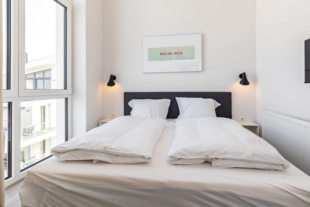 Wake up to the sparkle of the Baltic Sea and the charm of the marina just outside your window. This modern and comfortable 1st-floor apartment combines stylish living with the ease of a seaside getaway, offering everything you need for a truly relaxing stay. The heart of the apartment is its open kitchen-living space, where cooking, dining, and lounging flow together. Step out onto the large balcony or terrace to soak up the panoramic sea views from morning to evening. After a day outdoors, enjoy the spa-like bathroom with a rain shower, steam bath function, and underfloor heating. Evenings invite you to gather by the bioethanol fireplace, watch a movie on the flat-screen TV, or enjoy music through the Bluetooth soundbar. With two bedrooms furnished with double beds and TVs, plus a sofa bed in the living area for two additional guests, the apartment comfortably hosts families or friends. An elevator ensures easy access, while a reserved parking space in Palstek keeps your car close by. You can even borrow binoculars from the service office to spot ships or seabirds. Children will love the playgrounds along the newly designed promenade and the activity centre within the complex – complete with slides, climbing, and indoor fun. A black light mini golf course offers excitement for all ages, and as DanCenter guests, you enjoy free entry. Here, modern comfort meets coastal charm – a welcoming retreat for your Baltic Sea holiday.A refundable deposit might be charged closer to your check-in date. The security deposit ensures a smooth stay and covers any additional services or consumption charges.This deposit covers utilities consumed during your stay and any additional services that may be taken.The final amount will be adjusted based on actual meter readings, actual usage of extra services, and any remaining balance will be refunded within 21 days after checkout.This deposit simply acts as a prepayment for charges that you would anyways pay for, ensuring a seamless stay and check-out experience.