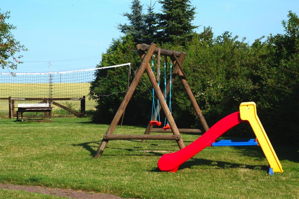 Lovingly renovated semi-detached house with two tastefully furnished holiday apartments, both equipped with cozy fireplaces. The 1,500 sqm property with a wonderful south-facing location is located in the small, tranquil estate village of Klocksin on Lake Flacher See. The entire complex, with a total of three self-contained apartments, is ideal for group trips for up to 18 people. The lake features a beautiful swimming area with a sandy beach and a dog beach for your four-legged companions. The spacious garden, with a swing and table tennis table, offers plenty of play opportunities for younger holidaymakers.