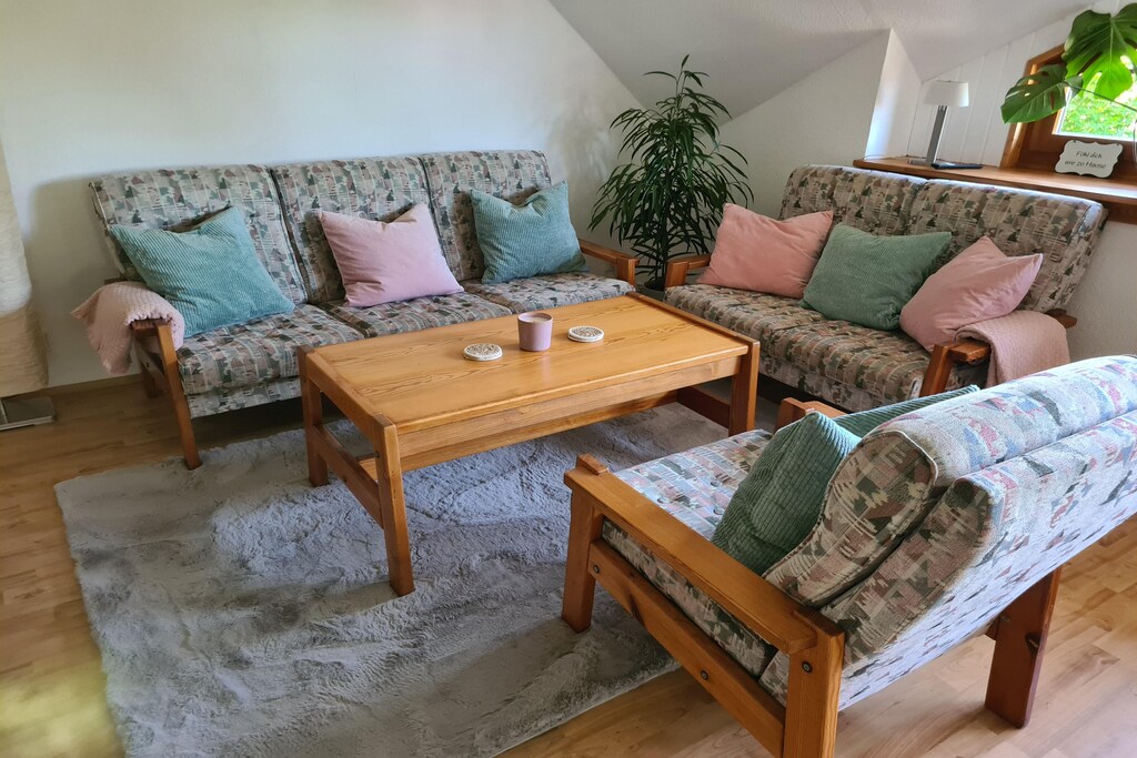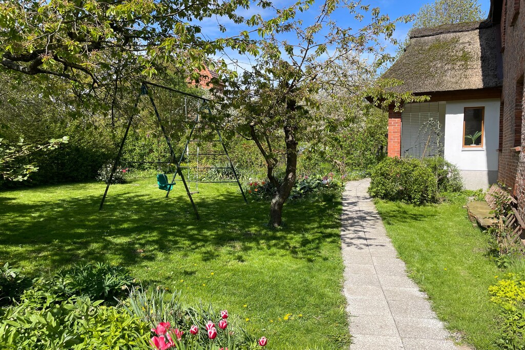 Outside, enjoy a private garden with furniture, sandpit, play equipment, and a garden shed for extra storage. A high chair is provided, and pets are welcome too. With a bakery, restaurants, and public transport all within 6 km, and Hamburg Airport 100 km away, this spot blends countryside charm with practical convenience.