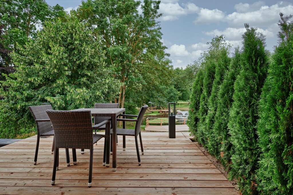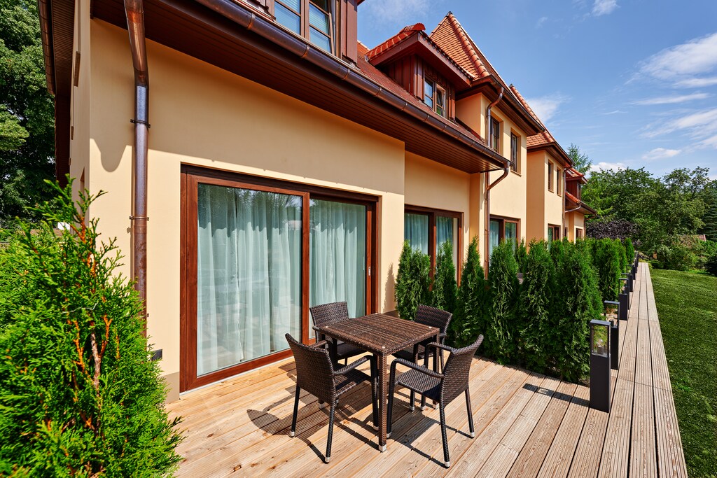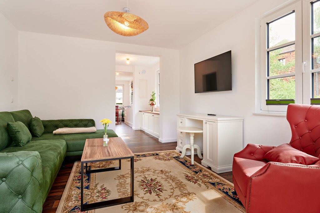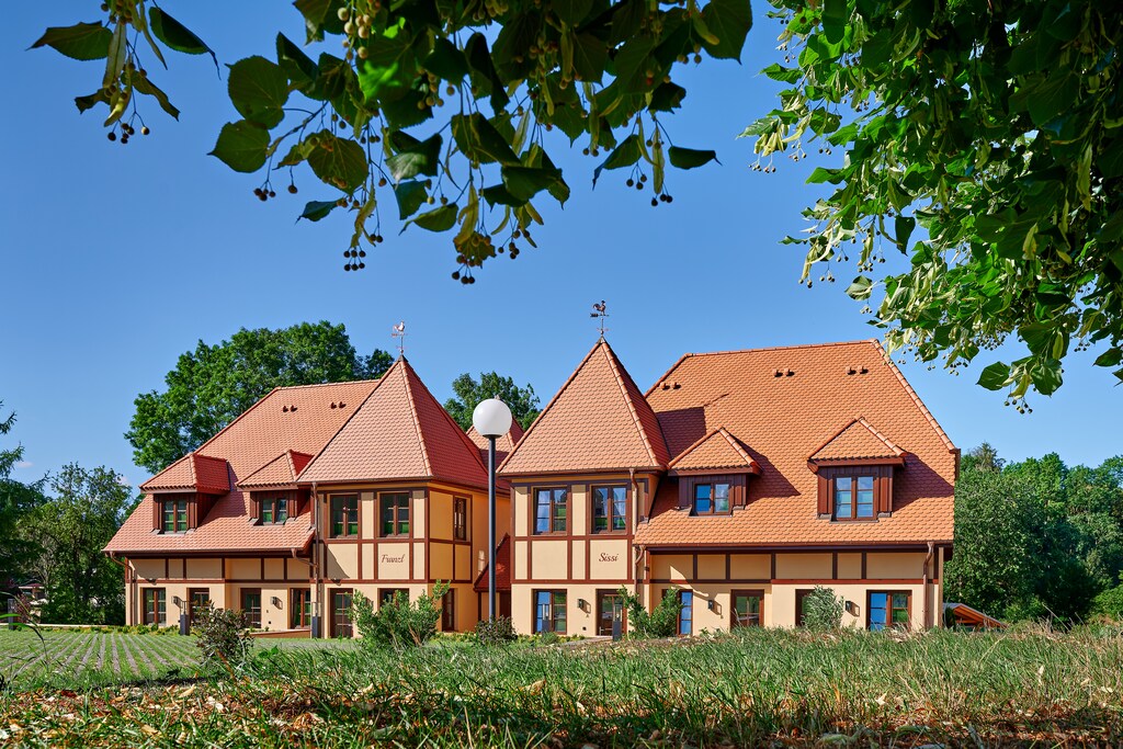 Our beautiful new Villa Sissi & Franzl is right next to the Schlosshotel Wendorf and not only offers you an unmistakable view, but is also the ideal starting point for your dreamy break. Because it doesn't matter whether you're on a city trip or just want to relax - you've come to the right place with us. 2 bedrooms for up to 4 people; terrace / garden; At the pond with a view of the countryside, living and dining area, well-equipped kitchen and the parking lot right by the house. You also have the opportunity to improve your handicap on the nearby golf course. There is also a professional riding facility at the foot of the castle park. Wendorf is only a few kilometers away from Schwerin. Surrounded by the charming landscape of the Mecklenburg Lake District, you have both the opportunity to discover art and culture in the state capital and to actively explore the beautiful natural landscapes.