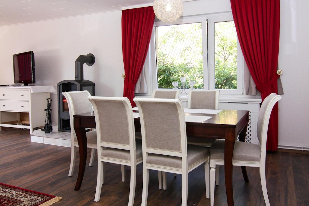 The holiday home is located in the immediate vicinity of the five-star Schlosshotel Wendorf and is only a few kilometres away from Schwerin. Surrounded by the charming landscape of the Mecklenburg Lake District, you have the opportunity to discover art and culture in the state capital as well as actively explore the beautiful nature of the Sternberg Lake District.