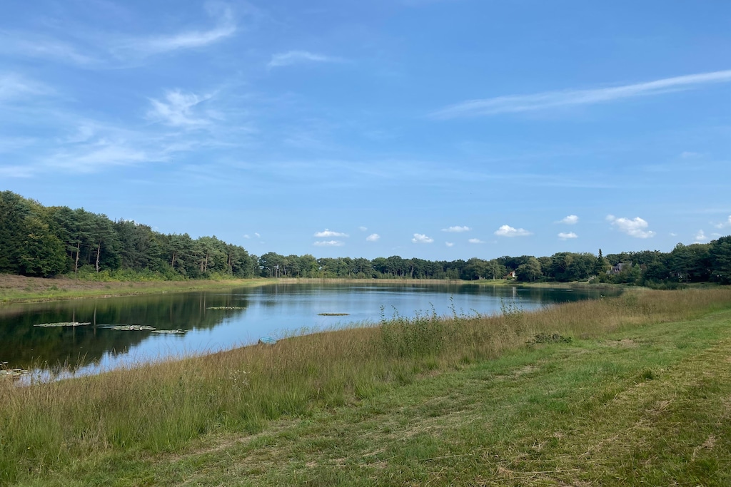 Rustic log cabin with sauna and spacious natural grounds and a magnificent view of the lake. There are two bathing lakes in this holiday home area, which are exclusively available to you as a guest of the house. Your holiday region promises pure relaxation for the whole family, because Wiefelstede is located in the middle of the charming park landscape of the Ammerland. In May and June, thousands of azaleas and rhododendrons in the most flaming colors transform the surroundings into a magnificent sea of flowers.