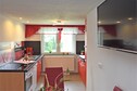 The open kitchen is fully equipped with a ceramic 4-ring stove, oven, combination microwave, dishwasher, fridge/freezer, toaster, filter coffee machine, and even a waffle iron—perfect for home-cooked meals and cozy breakfasts. The living/dining room includes a flatscreen satellite TV, radio, and dining table. The bathroom features a shower, washbasin, and toilet, while central heating ensures year-round comfort.