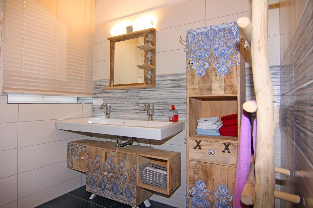 Shower (adapted for disabled, walk-in shower), Washbasin, Toilet, Hairdryer