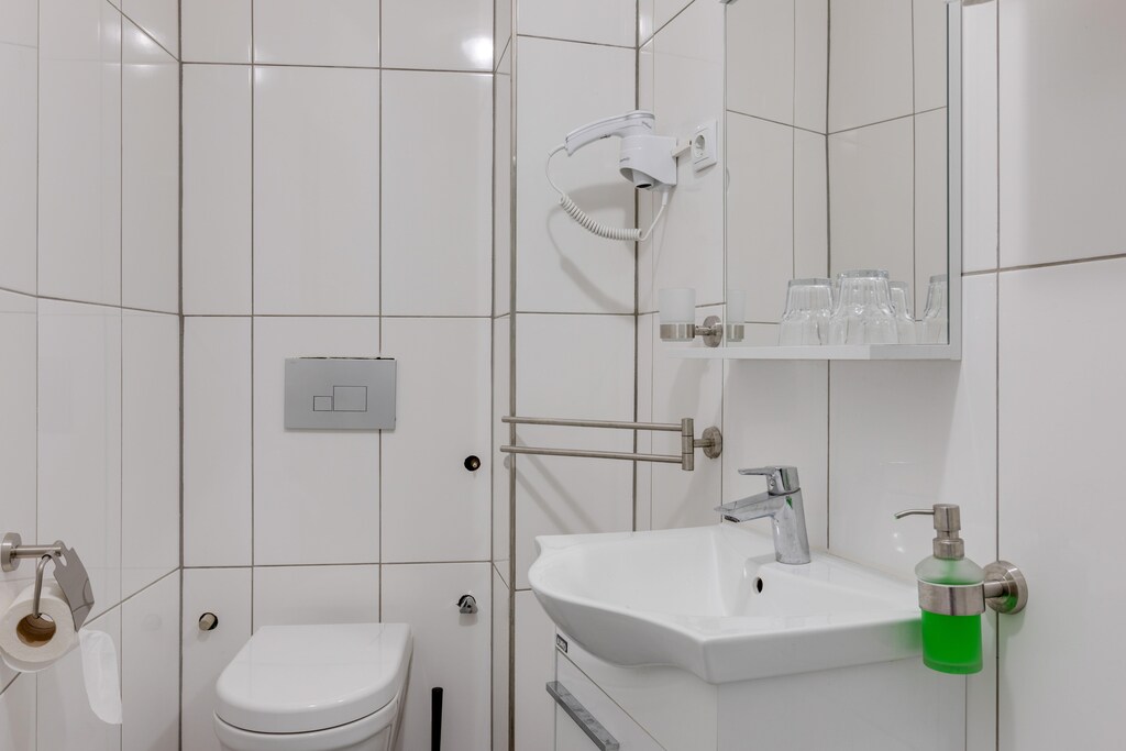 This pleasant ground and first-floor apartment in Oberhausen is ideal for 2 guests, offering a cozy and functional layout. The open kitchen is equipped with a coffee machine, electric kettle, and fridge, making it easy to prepare light meals. The living/sleeping area features a double bed, TV, and a comfortable seating corner, while the bathroom includes a shower, toilet, washbasin, and hairdryer for everyday convenience.