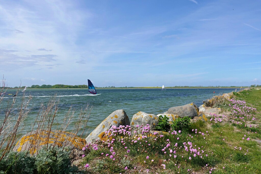 Newly built holiday apartment - bright and friendly - on the 1st floor of an apartment building directly on the Baltic Sea beach in the idyllic marina of Orth. The modern and newly furnished apartment has a living-dining area with an integrated kitchen, flat-screen TV in the living room and bedroom and a spacious balcony with a beach chair. Beautiful sunrises are guaranteed! The apartment is designed with oak parquet flooring. The kitchen is fully equipped with crockery, glasses, cooking utensils, coffee maker, kettle, dishwasher, oven and fridge with freezer. The bathroom has a shower and bath and a washing machine. A separate storage room on the ground floor is available for guests to store bicycles and surfing equipment they have brought with them. The apartment is perfect for 2 people, also with a dog, but multiple occupancy of up to 4 people is possible. The comfortable sofa bed in the living room is available for this purpose. The holiday complex is located directly on the marina and dyke, so that you are just a few steps away from the Baltic Sea. Cafes and restaurants invite you to linger. There are delicious rolls, tarts and cakes. If you would like to enjoy breakfast in a beach chair, you can already watch the hustle and bustle of the port in the morning.