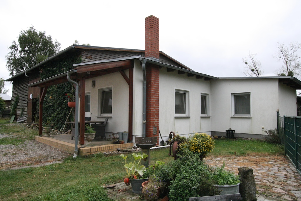 Wheelchair accessible cottage in an idyllic location on a small animal farm. Ideal for anglers and hunters! The town of Parmen is located in the Uckermark Lakes Nature Park on the edge of the Feldberg Lake District. The park offers over 600 km of marked hiking trails and plenty of waterways. On their tours, nature lovers will discover a wonderful landscape with a world of flora and fauna that is second to none. The Feldberg lake landscape is a wonderful retreat for nature lovers and for everyone who longs for a little peace and quiet from the hectic everyday life. Here you can go on a discovery tour and let yourself be pampered with culinary delights: In Feldberg and the small villages in the surrounding area, fresh regional dishes await you in cozy country inns as well as in restaurants with top gastronomy. The district town of Prenzlau is around 23 kilometers away. Highlights included: WLANActivities nearby: Rowing boat tours on the lake, hiking and cycling. You can swim carefree in the numerous crystal-clear lakes that were formed more than 10,000 years ago. Walk in the footsteps of the Ice Age. Explore Germany's oldest beech forest and the unusual diversity of flora and fauna. Here you will experience soothing natural relaxation in nature. Feldberg as the best-known local recreation and health resort, Stargard Castle with the oldest hilltop castle in northern Germany, the pearl of the Uckermark, the towns of Templin and Prenzlau and the mill town of Woldegk invite you to take interesting excursions. The pretty village of Carwitz, where the writer Hans Fallada once lived, impresses its visitors with its idyllic location. (Microwave is available on request.)