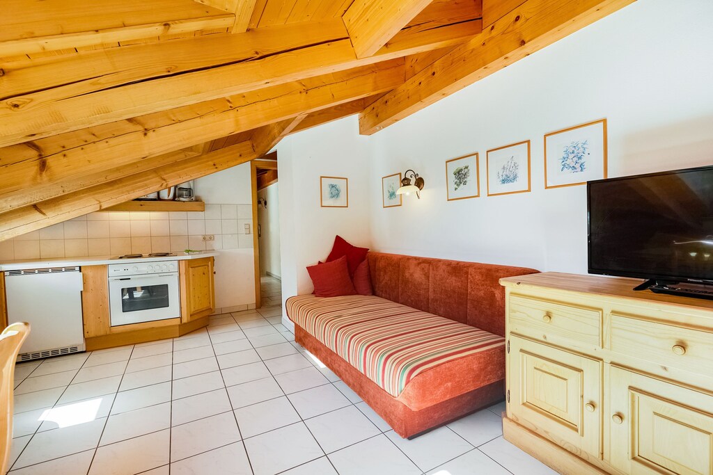 The combined apartment spans two upper floors of a charming house, offering rustic coziness and modern comfort. Perfect for families or small groups, it features a spacious garden with sunbathing space and play equipment. From its scenic location near famous peaks like Jenner, Göll, and Kehlstein, guests can enjoy warm hospitality and numerous recreational activities.