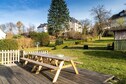This spacious and modernly equipped holiday home is located in Siedlinghausen, a district of Winterberg. The attractive, spacious living room is separated from the large open kitchen by beautiful authentic wooden beams. In the kitchen there is a long dining table with 14 chairs where you can enjoy a leisurely dinner and have a beautiful view over the garden. The kitchen is equipped with all modern appliances. You have direct access to the garden from the kitchen. There are 6 bedrooms and 3 bathrooms. 4 bedrooms have 2 x single box-spring beds, one bedroom has 2 x single beds and the 6th bedroom has a spacious double bed. There is a separate room for skis. Those who enjoy playing table tennis can do so in a specially equipped room where children can play and have fun. The holiday home is surrounded by a large garden with garden furniture and a meadow.Siedlinghausen is a beautiful village between the Sauerland hills. In the village you will find various shops (bakery, supermarket, bank and tourist office) in the immediate vicinity of the house and restaurants.