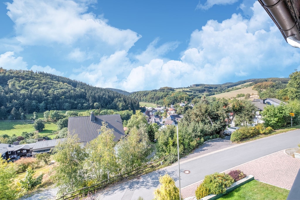 We zijn een groep van 4 koppels van ron de 70 jaar die elk jaar voor een midweek een vakantiehuis huren. We werden zeer vriendelijk door de inmiddels 84 jaar jonge mevrouw Schmidt. Zij was zeer behulpzaam en zij bestelde brood en broodjes voor het ontbijt voor ons. Het vakantiehuis is prima verzorgd, prima bedden en van alle gemakken voorzien. Alleen de magnetron werkte niet, maar de oven was prima. Alles was keurig schoon. Voor mensen die slecht ter been zijn is het minder geschikt. Het vakantieappartement ligt op de 2e etage, dus er moet flink trappen gelopen worden. Jammer dat de Sateliet-TV geen enkele Nederlandse zender heeft. We waren er met Prinjesdag en die beelden hebben we gemist. Winterberg en Willingen zijn kortbij. Boodschappen doen op 6 Km. We hebben het reusachtig naar ons zin gehad. Aanrader!!