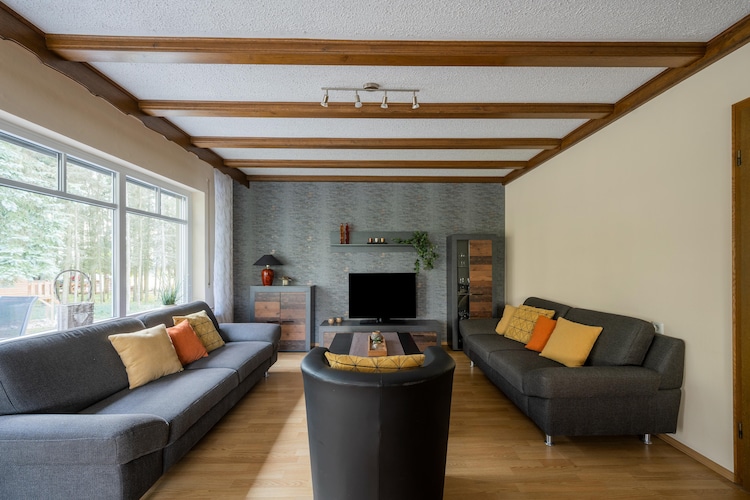Het interieur mag dan een beetje uitgeleefd tonen, toch blijft dit een prima vakantiehuis. Ruim huis, ruime tuin, weidse locatie vandaar ook een leuke plek om weer thuis te komen na je uitstapjes in de Eifel.
