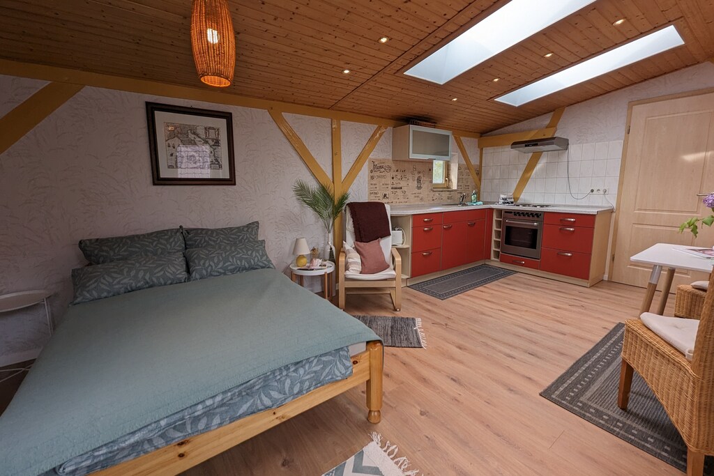You will find this living/bedroom apartment with a lovely shared garden to linger outdoors in Usedom. The apartment makes a great stay for 2 persons, be it a newlywed couple or friends.