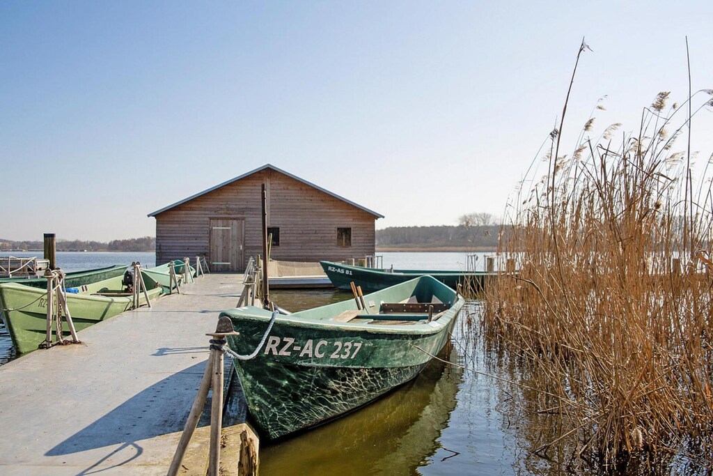 You can enjoy canoe tours on the Müritz, fishing on the shore or just the peace and quiet on the jetty around your tastefully furnished holiday apartment on the Fischerhof in Vipperow. The picturesque view of the lake leaves no doubt: Here you can leave everyday life behind and be enchanted by the natural charm of the Mecklenburg Lake District. The cozy studios over two floors and for up to four people are also made for a great time together with family or friends. Children in particular will be enthusiastic about setting up their sleeping space on the open sleeping gallery. You can cook something for yourself in the open mini-kitchen, or treat yourself to a fresh fish roll from the Fischerhof's snack kitchen. Both are part of the Müritz-Havel waterway. There is a post office in town, as well as a farm café and holiday accommodation. Good shopping facilities for everyday needs, restaurants and a pharmacy can be found in Rechlin on the opposite bank, about four kilometers away.Highlights:All consumption-dependent energy costs and bed linen includedWLAN included15% discount on the rental of boats from the Müritz fishermen at their fishing yards in Plau am See, Krakow am See and WarenActivities nearby: A true paradise awaits anglers and all those who would like to become one on the Müritz and the surrounding lakes. But in addition to water sports, you can also keep yourself busy on land. Long walks and extensive bike tours are best started right at the front door of your holiday home. A visit to the towns of Waren an der Müritz or Neustrelitz (both around 30 kilometers away) forms a pleasant contrast. The castle garden with church and orangery is one of the most important sights in Neustreli