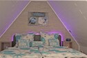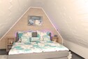 The property features a cozy living/dining room with a flatscreen satellite TV, decorative fireplace, DVD player, and stereo unit. The fully equipped kitchen includes a ceramic stove, oven, microwave, dishwasher, and fridge-freezer. A walk-in shower, central and floor heating, and a comfortable attic bedroom with a double bed ensure a relaxing stay. Guests can enjoy the conservatory, private terrace, shared garden, and amenities like a cot, barbecue (on request), toys, and party games.