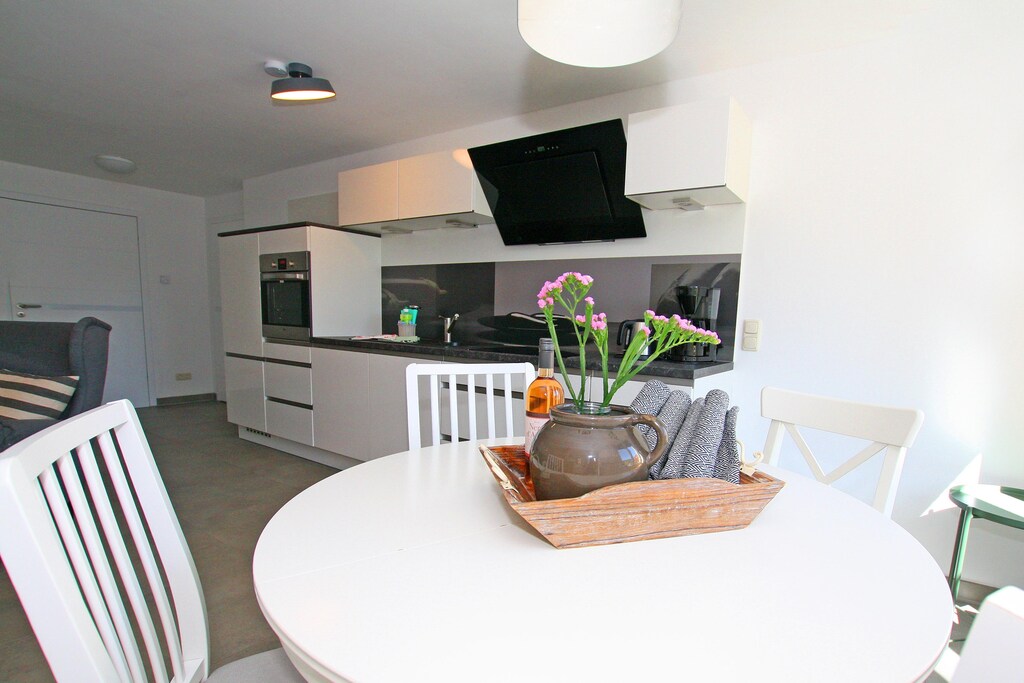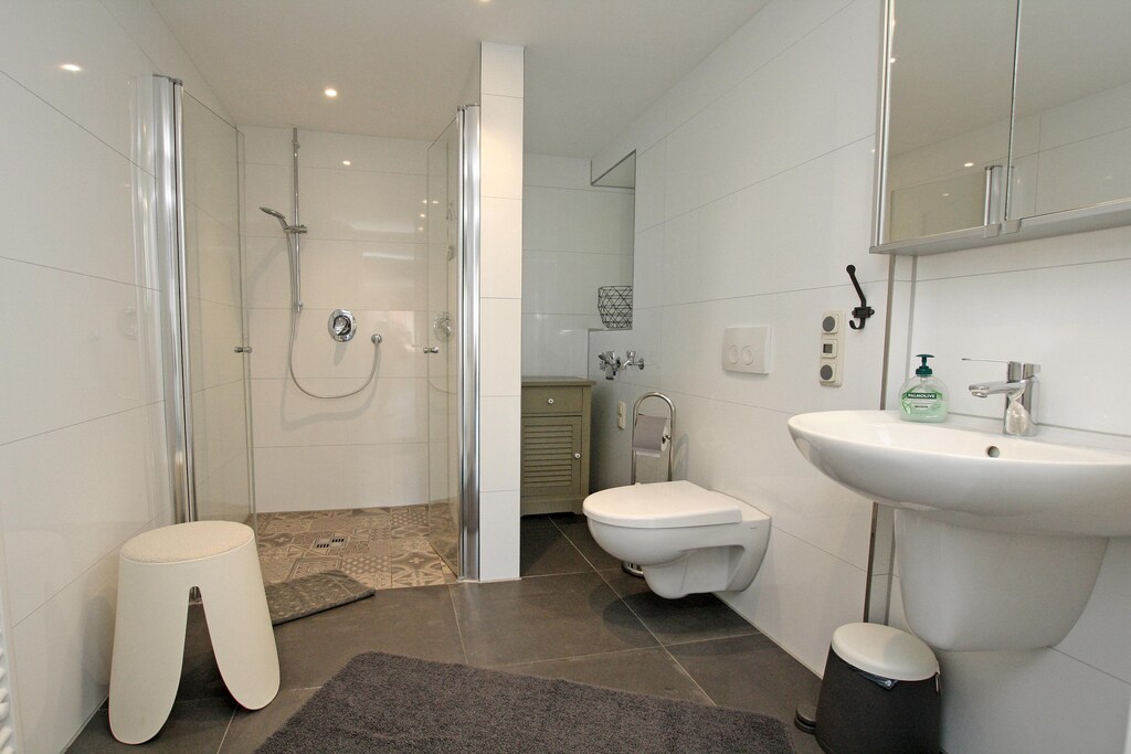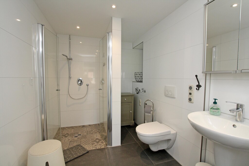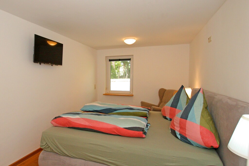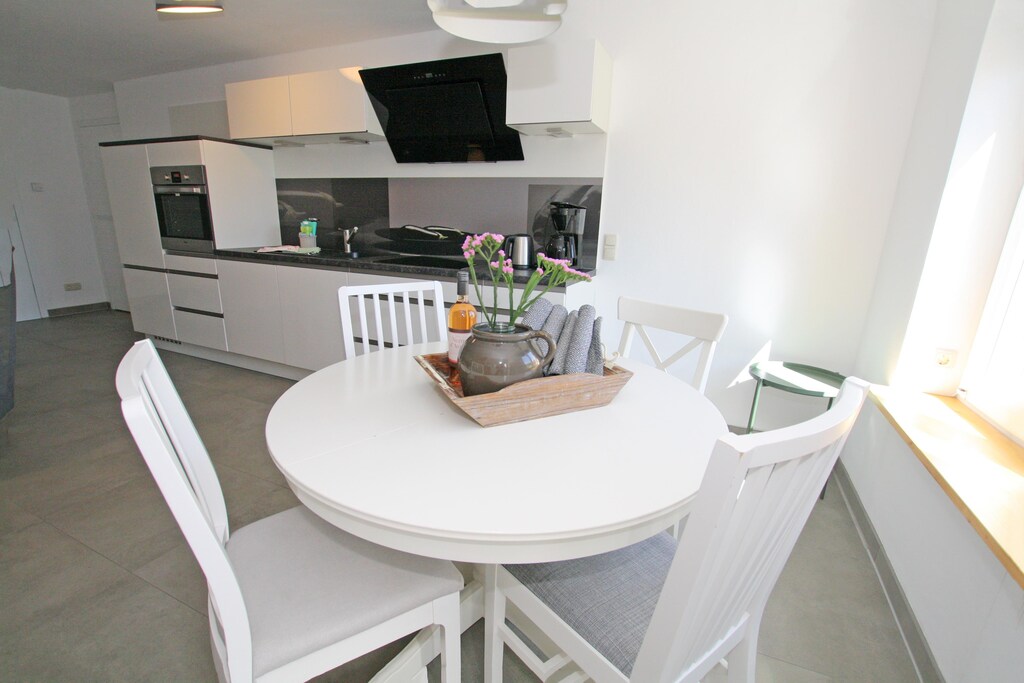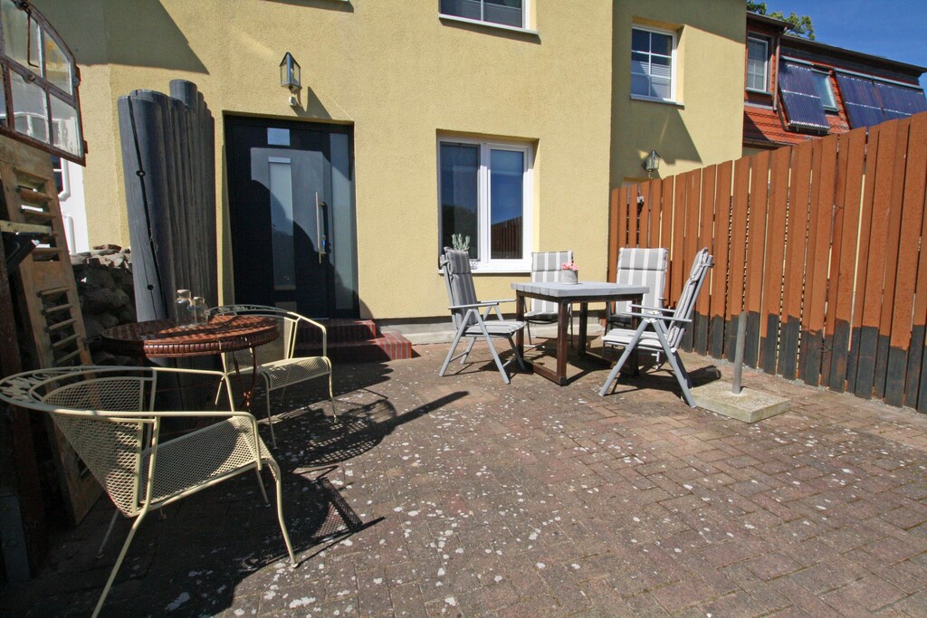This wonderful and comfortable holiday apartment is located along with two other apartments in a property in Wiek, in the center of this former fishing village. It is truly modern and spacious, located on the ground floor, and can accommodate up to four people. Guests have access to two separate bedrooms and a bathroom with a walk-in shower. The kitchen is well-equipped and offers everything you need to prepare a delicious meal. The open, modern living area invites you to linger. Directly at the entrance, guests have access to a private terrace with seating and a parasol. The large, well-maintained garden is a real additional highlight. There is plenty of space for all ages. There are garden loungers, a barbecue area, and parking spaces available. Bicycles can also be stored there. Wiek has been a state-recognized health resort since 1999 and is considered one of the most beautiful places on the island. Wiek is located on the west coast of the Wittow peninsula in the north of Rügen, very close to the landmark Cape Arkona with its two lighthouses. Wiek's traditional harbor has been redesigned and, with its many colorful boats, underscores the town's wonderful maritime atmosphere.