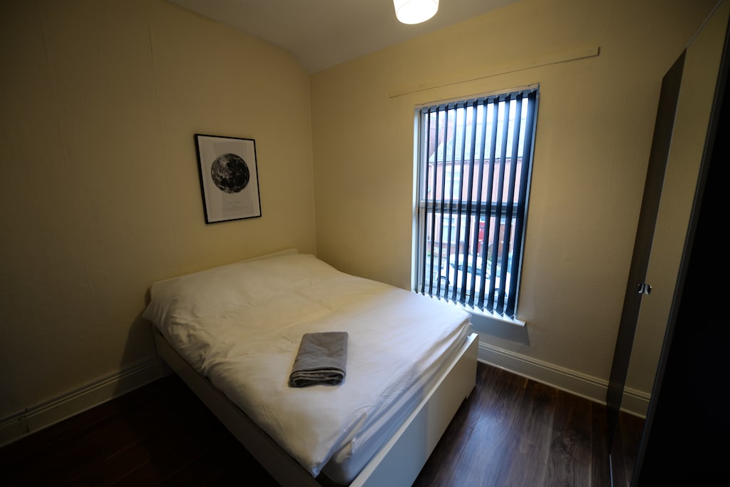 This peaceful apartment in Coventry offers a perfect stay for a large family with children or a group of 8 people. With 1 bedroom on the ground floor and second floor each and 2 bedrooms on the first floor, this home has a fully-fitted kitchen to prepare delicious delicacies for your loved ones and washing and heating facilities as well.