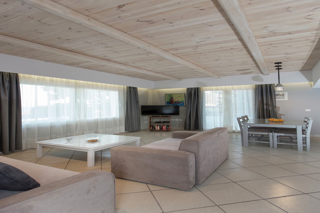 Located just 0.3 km from the stunning Aghia Paraskevi Beach, guests can explore nearby Livadaki Beach, known for its shallow waters, restaurants, and water sports. Adventure seekers can visit the mountains of Kerkis and Ambelos, offering breathtaking scenery. The main ports of Vathi and Karlovasi are 8 and 9 km away, respectively, with public transport accessible nearby.