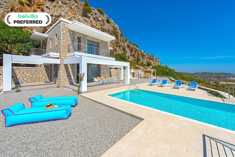 Villa Olympos is an exclusive newly built villa providing comfort and luxury in a private environment. Built with natural materials it has a mountain view at the back and 180 ° sea views at the front.