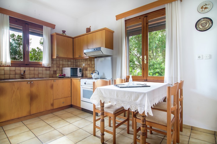 Alt i alt, et behagelig opphold, Villaen er pent innredet og romslig nok for vår gruppe på seks, De nærliggende spisesteder som Taverna Plateia var praktiske, men vi likte mest å lage mat på kjøkkenet