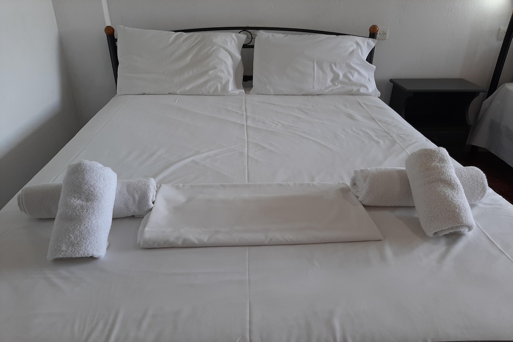 The home is air-conditioned to keep you cool in the warmer months. Dive into the shared swimming pool, unwind on a sun lounger, or enjoy a drink from the on-site bar. There’s free parking, and the peaceful setting makes it a perfect base for a relaxing Corfu holiday.
