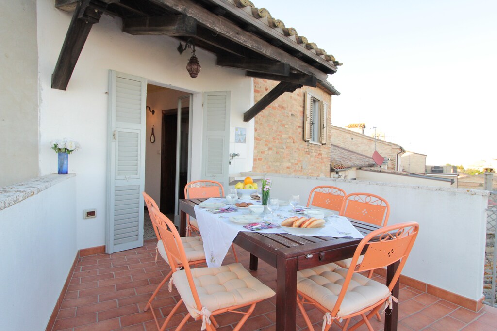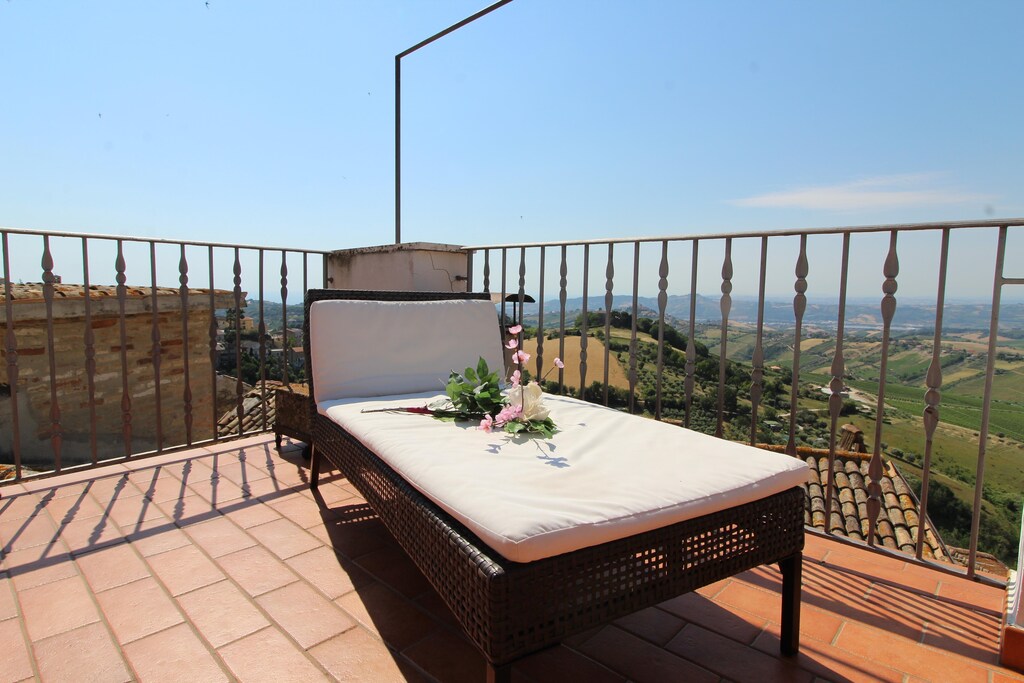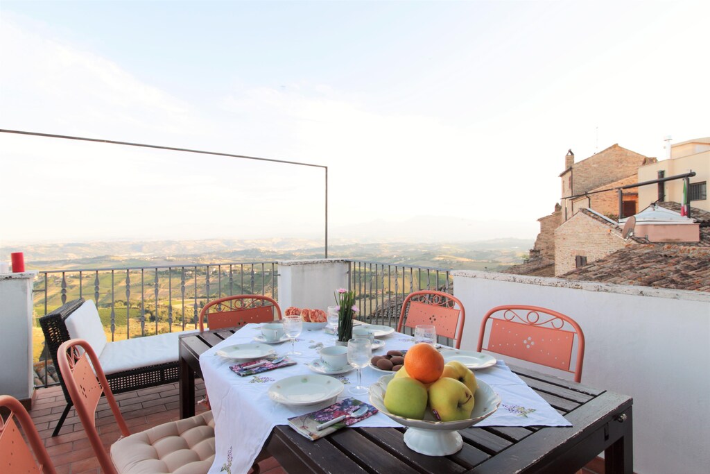 An optional utilities and service fee of EUR 160,00 will be charged before your arrival. Details are given below.<br> From the terrace of this ancient holiday home, located in the charming village of Acquaviva Apicena, 350 meters above sea level, you can admire a splendid panorama: on one side the sea and on the other the Abruzzo mountains. The house is spread over 3 floors, which are themselves placed on various levels, therefore ideal for a large family or a group of friends. And it ends in the large terrace adjacent to the living room and kitchen where you will spend unforgettable evenings. You can visit the medieval village like Cupra, Grottamare Alta and wonderful cities like Ascoli Piceno, Macerata, Pescara, Rome. For nature lovers, the two national parks, Gran Sasso and Monti Sibillini, offer itineraries to be done both on foot and by bicycle. The interiors of the home are tastefully decorated and bedrooms offer a peaceful sleep. For your child's convenience, there is a high chair and camping cot. You can keep your luggage in the storage room as well. About Belvilla When you stay in a Belvilla home, you can rest assured of a unique holiday home in ideal surroundings at an attractive price. The portfolio of accommodations consists of more than 40,000-holiday homes in 20 European countries. Interested in a weekend getaway, a summer or winter sports holiday or simply a short break? Do you prefer the coast, the countryside or the mountains? Whatever your preference, there is a Belvilla home to meet your needs, from a cosy gîte for two to a castle big enough for the entire family, from an apartment in the heart of Rome to a cabin in the middle of nowhere, from a simple tree house to a luxury dream villa and from close to home to the other side of Europe. A Belvilla home gives you the freedom to enjoy breakfast in your pyjamas or continue a good conversation into the morning hours without having to worry about the bar's closing time. Prepare gourmet meals with fresh local ingredients in your own kitchen and take advantage of having your own swimming pool to do as many cannonballs as you want! In other words, you can enjoy complete privacy in your home away from home. <br><b> Optional Utilities & Service Package </b><br><b> An optional utilities and service package of EUR 160,00 </b> can be selected prior to your arrival. You will receive a separate communication with the payment link should you wish to include it.<br>This package ensures a seamless stay and conveniently covers services such as final cleaning, utility consumption, service support, and protection against minor damages or incidental costs during your stay.<br>Guests who prefer may manage these services independently, provided the property is returned in good order at check-out.