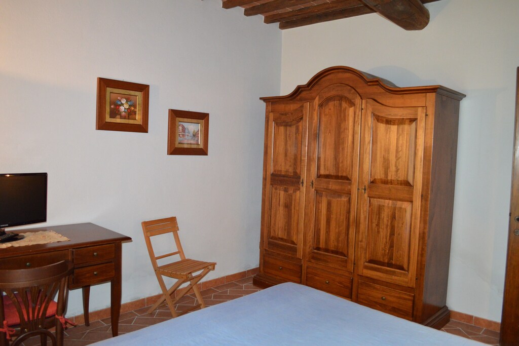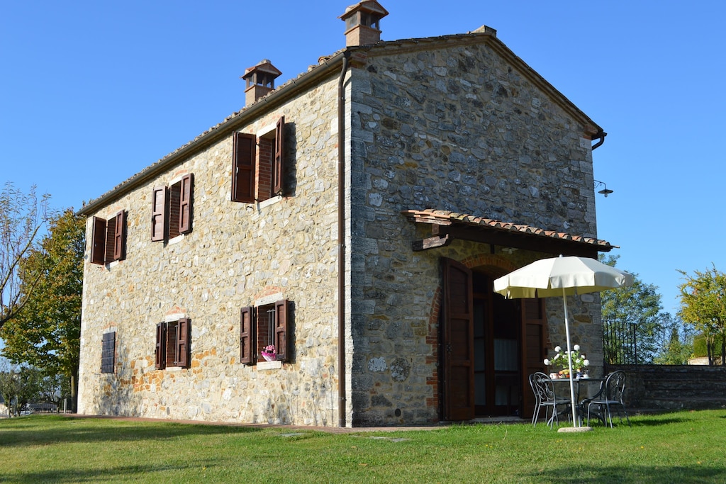This charming ground-floor villa in Montalceto (Asciano) combines rustic Tuscan charm with modern comfort. It offers an open kitchen (4-ring hob, boiling water tap, hood, coffee and espresso makers, oven, dishwasher, fridge), a living/dining room with double sofa bed, TV and cozy seating. There’s one double bedroom and a bathroom with shower and bidet. Shared amenities include a paid washing machine. The home is pet-friendly and Wi‑Fi keeps you connected throughout.
