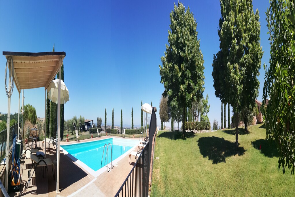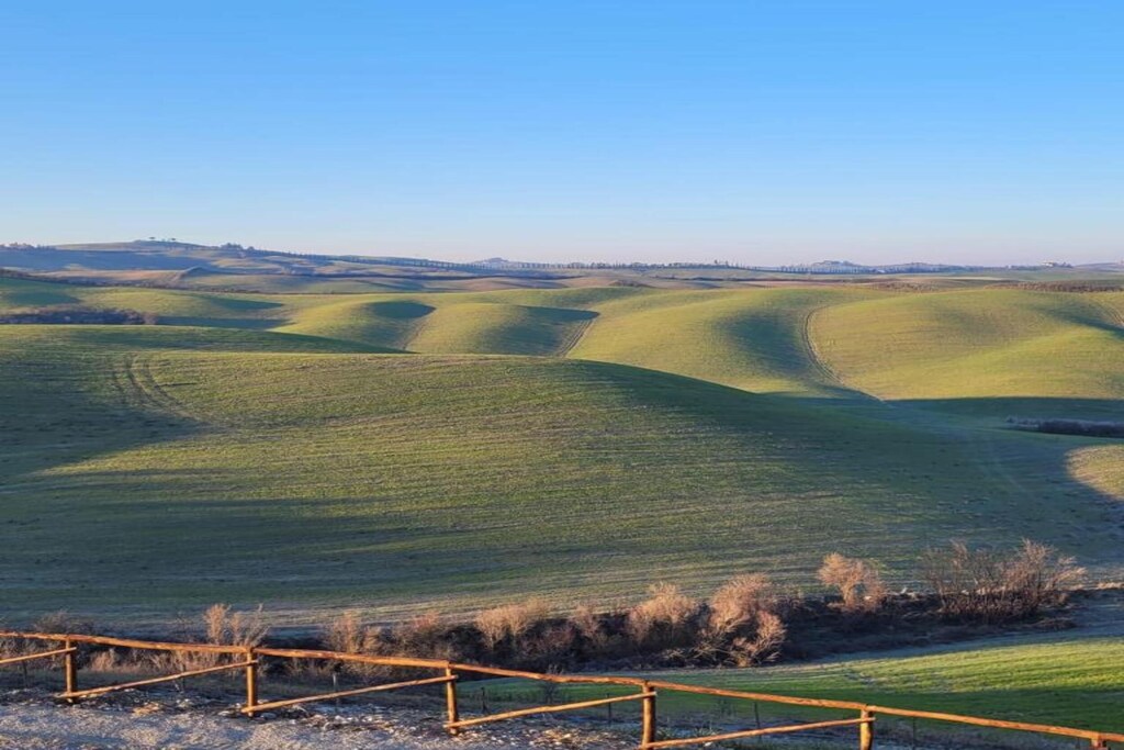 Nestled 3 km from Asciano’s historic centre, the villa is nestled in the evocative Crete Senes, rolling clay hills famed for their lunar beauty and iconic cypress-lined roads